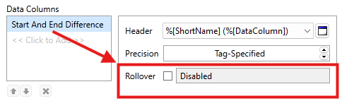 If Start And End Difference is selected, a Rollover setting appears. You can use this option to account for rollovers when calculating the start and end difference.