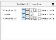 Alignment within the context of containers is only available along the vertical axis. To change horizontal alignment, view the individual component properties.