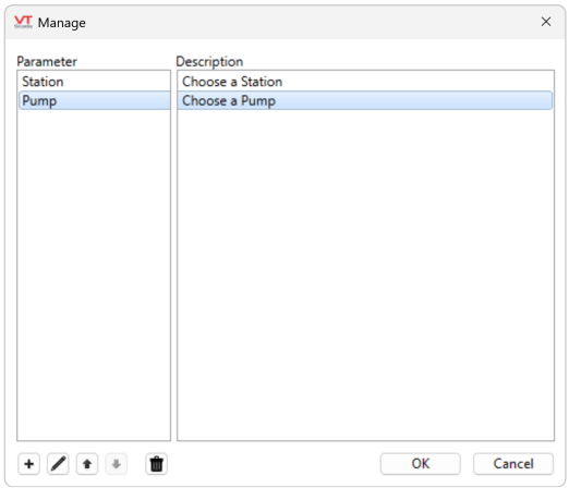 The buttons along the bottom of this manager allow you to add, edit, rearrange and delete parameters.