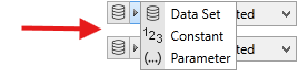 Data 1/Data 2 - Change the input type by clicking the arrow next to the disc icon. Choose from Data Set, Constant or Parameter.