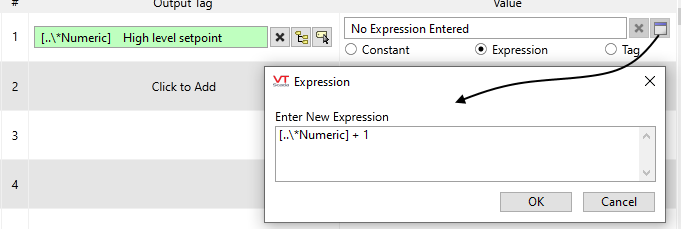 The path should now read [..\*Numeric], followed by the description of the tag you are using as the parent. - Click once in the Value column.