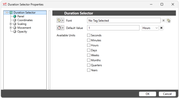 You can choose to only show select units of time in the Duration Selector dialog. If none are checked, they will all appear. If some are checked, only the checked units will appear.