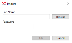 On clicking the button, the following dialog is displayed, which allows you to select the file and supply the password associated with the private key (which is encrypted within the file).