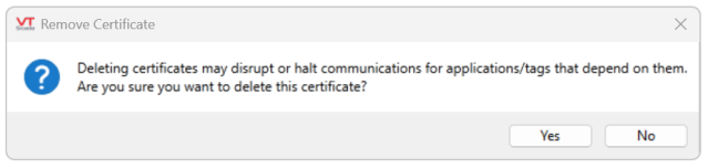 VTScada will raise an alarm when a certificate is within 30 days of expiry to give you time to install newer certificates.