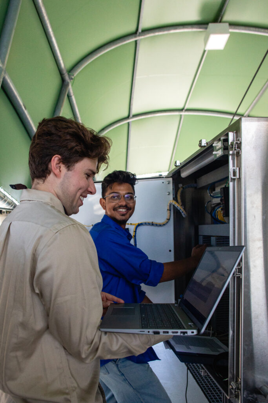 These siblings operate semi-autonomously and have inspired trash interceptor innovation around the world. In fact, the Newport Beach trash wheel is the first trash wheel in the US to be automated by SCADA and PLCs. A big part of our job was bringing that automation to life. The scope encompassed not only setting up the SCADA software and control functions, but also electrical design, PLC programming, testing, and commissioning. The essential control functions of the trash wheel manage the pumps that power the wheel, operate the conveyor belt system that transports the trash from the river to the collection bins, and monitor the operation of the bins. The bins must be easily accessed by trash collectors, who are responsible for emptying them into garbage trucks for proper disposal.